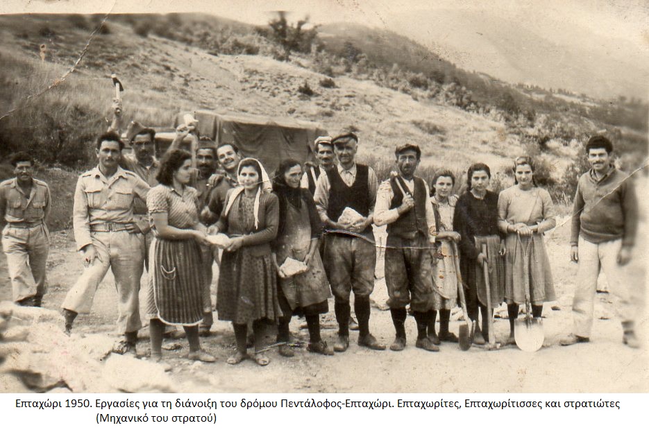 Κάποιες γυναίκες απ΄αυτές που μετακινήθηκαν στον Πεντάλοφο εργάζονταν για τη διάνοιξη του δρόμου από τη Μόρφη ως το Επταχώρι. Το μηχανικό του στρατού είχε αρχίσει τη διάνοιξη από το 1948. Επίσης αυτές οι Επταχωρίτισσες μαζί με Πενταλοφίτισσες και Ζουζουλιώτισσες έφταναν ως το μέτωπο του Εμφυλίου και μετέφεραν τραυματίες στο Επταχώρι.
